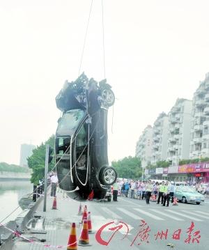 昨天上午9时30分许,南城鸿福桥下,一辆车头已烂的保时捷卡宴豪车在钢缆的牵引下,被从运河中捞起,吊到岸上——据南城交警大队事故处理中心一名负责人介绍,昨日凌晨4时30分许,他们接到报警;上午8时许,蛙人赶到现场打捞。事故中无人受伤,原因还需调查。