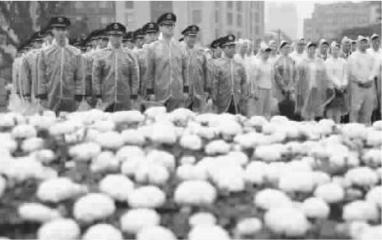 ■ 早晨,黄浦区在外滩上海市人民英雄纪念塔广场举行仪式,向人民英雄敬献花篮 杨建正 摄
