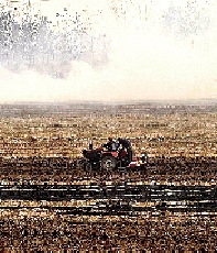 再向南走,一块土地上有不少农民拿着农具在干活,附近,也有人在燃烧秸秆,烟雾不断向周围飘去。