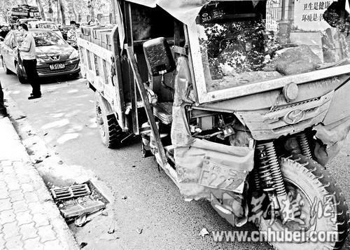 拉砖三轮撞百万路虎 对方称能赔多少是多少(图)