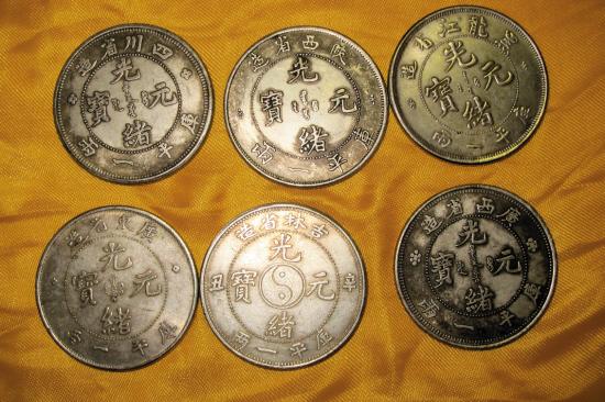 黄先生告诉羊城晚报记者,这些银元就藏在砖墙夹层,可能是民国时期当过军官的祖宗在建屋时秘藏的。他说,他为此查看了几本有关银元的书籍,把29个银元一个个进行鉴别发现,这些银元种类多,大多数是“袁大头”,有几枚属于“大十珍”、“小十珍”。这些银元上分别有广东、广西、吉林、黑龙江、陕西、四川造和“光绪元宝”等字样。其中有一枚很特别,银元的正面有“福州船政成功”字样,反面有“大清御赐银牌”字样,还有一枚是当年为慈禧祝寿而铸造的市面极少流通的双龙银元,另外还有几枚洋银元,并有“1908-1911”字样(湛江曾经是法国殖民地,当时法国的银元曾在当地流通)。
