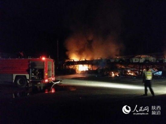 陕西安康境内高速半挂车起火 车上20辆轿车损毁