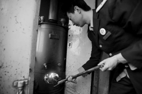 53岁的辛炳科是2667次上年纪最大的乘务员,也是这趟车上烧煤经验最丰富的老师傅。“(温度)烧高了车厢干,烧低了旅客冷。”辛炳科说,这就需要掌握火候。同时,2667次虽然老旧,但也要经过沈阳北、长春、哈尔滨这样的现代火车站,停车时要想不冒黑烟且锅炉不灭,考验的全是压煤的本事,辛炳科告诉记者,这些年让他骄傲的是,自己带出了40多个徒弟,好多人都已成为车长了。