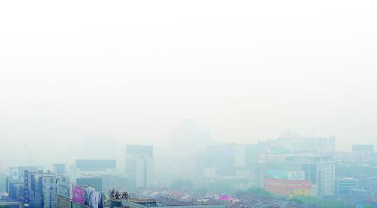 ◤雾霾占据了城市的天空(资料片)。本报记者 张中 摄