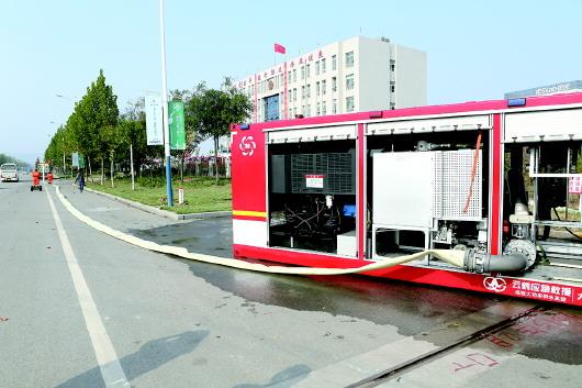 ◤远程移动供水系统能利用火场以外的自然水源,在3公里范围内持续不断供水。 本版照片均由本报记者 尉伟 摄