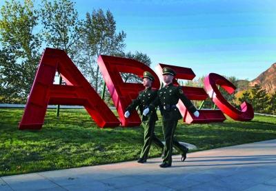 根据介绍,APEC会议期间,武警北京总队担负会议活动现场警卫、外宾住地警卫、行车路线警卫、社会面武装巡逻、公共交通安检维护秩序、国宾摩托车护卫、礼炮鸣放司礼等13项安保任务。
