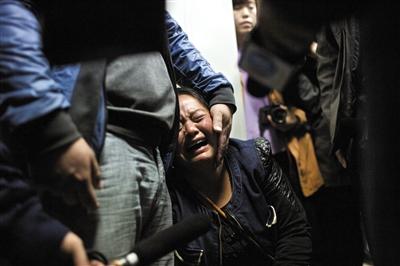 听说针已全部取出,女婴母亲在手术室外哭泣。