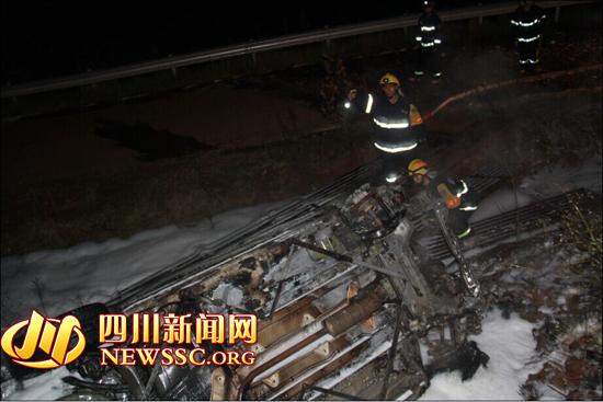 成都一轿车翻车后自燃爆炸 司机挣扎惊险逃生(图)