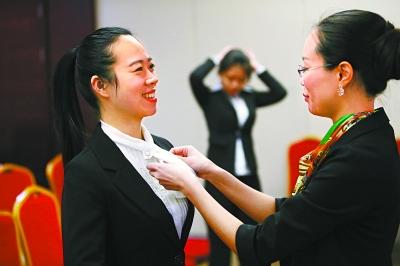 ▲礼仪规范和仪容仪表将展现志愿者最为优雅、青春的一面。培训课上,李硕格外认真,各种小细节都会征求礼仪培训老师的意见。