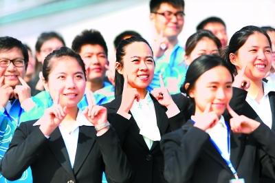 ▲从2008年北京奥运会开始,志愿者们真诚的微笑便成为北京的城市名片。完美的微笑需要面部肌肉的协调运动、目光中呈现友好的光彩和真诚善良的内心配合。在两天的集训中,志愿者们需要反复练习,展示出发自内心的真诚微笑。