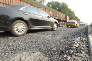 石家庄一桥面被沥青石子“糊住”300米(组图)