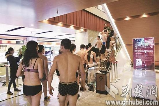 商家推脱光免单促销百名男女穿内衣抢购 市民:低俗