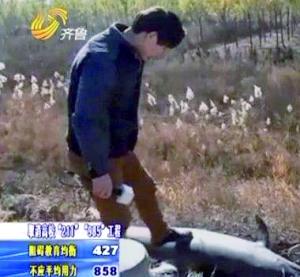 山东一公路边现海豚尸体 全身乌黑有多处伤口(图)