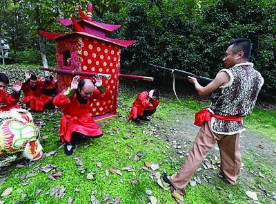 前天(15日)下午,南京白鹭洲公园里,一顶花轿在林间抬过来时,突然出现一个持枪的汉子,抢了新娘就跑,吓得几位游客还打算报警呢。扬子晚报记者接报后赶去才知,原来这是几个大学生自己筹拍微电影《红高粱之九儿的前世今生》,分别在南京和常州取景拍摄,计划一周后杀青。