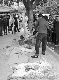 15日,本报读者“空中人”向记者反映,仓山展进路口,几名男子当街杀羊售卖,手段残忍,而且所卖的羊很可能没有经过检疫。