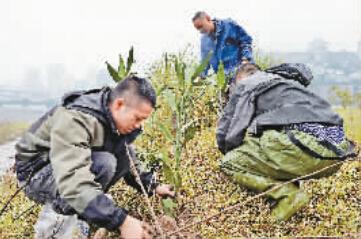 前日晚,周刚就在滨江路边搭了帐篷睡觉。昨日下午2时,三人决定再次上岛。由于有前一天拉起的牵引绳,这次划橡皮艇节省了不少时间和体力,20分钟后就来到岛中央,山茶花开得鲜艳。周刚拿出从花市买的青竹,和队友们挖下深坑栽种下去(如图)。“等到明年,青竹就能长出一片。”周刚还带了金属探测仪,拿出在岛上巡视,发现了一个“宝物”———一块汽车牌照,这让队友忍俊不禁。