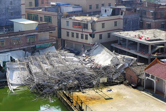 钟落潭长腰岭村塌楼现场(记者 郑迅 摄)