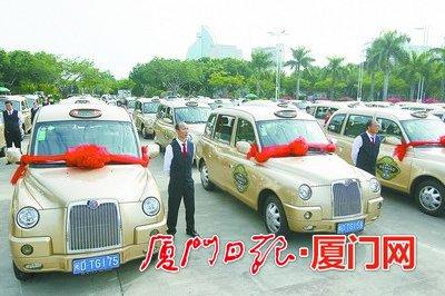 16日,50辆香槟金色的英伦TX4电召出租车“身披”大红花,从白鹭洲公园音乐广场缓缓驶出,为“美丽厦门”增添一朵“英伦玫瑰”。统计数据显示,截至16日20时,海亿联合公司电召中心共接电召业务约300单,即时电召成功率达90%(剩余的10%多为司机赶到却没有人或取消电召),市民“尝鲜”热情高涨。
