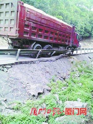 土方车厦门同南路避车险坠崖 波形护栏救了命