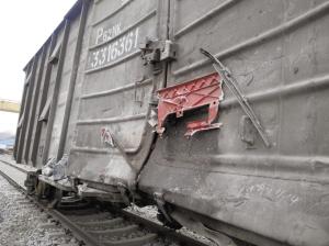 据正在勘查现场的铁路部门工作人员介绍,事故发生于27日凌晨零时许。当时一列货运列车以五公里时速,由东向西通过西三环与保满支线铁路平交口。在牵引机车和后面两节车厢均已正常通过的情况下,这辆由北向南行驶的肇事大货车,撞在了列车第三节车厢的车门位置。大货车超重运载了一整车石渣,并且没有减速,所以冲击力非常巨大,将列车第三节车厢两端牵引钩撞开后,将车厢撞脱轨翻倒在地。事故造成第三节车厢车轮脱落,严重损坏变形,已经报废无法再用。
