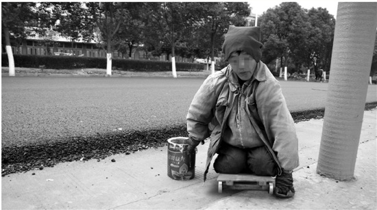 “他趴在一块滑板上,用两手爬行。””小云”掏出5元钱放进乞丐的罐子里,随后又有几个好心人也过来放了点钱。