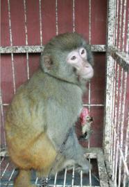 昨日上午,记者跟随自贡市林业局和野生动物救助中心工作人员来到贡井老街见到了这只猕猴,猕猴左手腕已经被猎人铁夹夹断,而且发炎红肿,几乎断掉。据悉,这是一只广西猕猴,属国家二级保护动物,工作人员将对其进行救治,送到自贡市动物园内饲养。