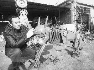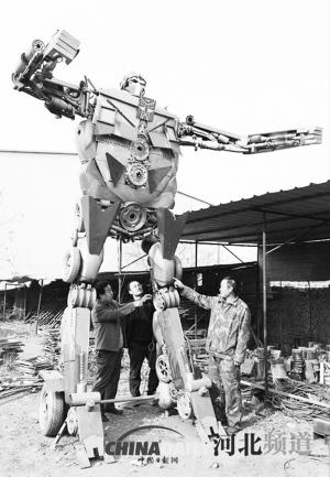 如今,姚福兴被吸收为沧州市工艺美术家协会会员,他制作的“大黄蜂”和“擎天柱”在各种展览中一亮相便受到观众的喜爱。“天冷了,不好干活了,接下来暂时不会再制作新的作品。如果有人喜欢我制作的变形金刚系列,我愿意出售,虽然它们都是用废旧零件制作成的,但是制作过程耗费了很多工夫和心血。”姚福兴一边说心里却透着不舍。(记者 冬子)