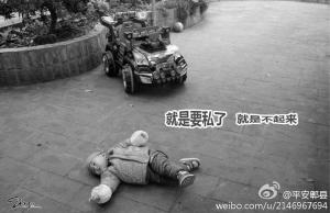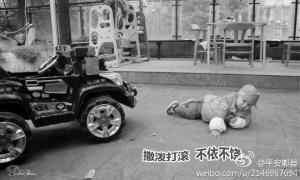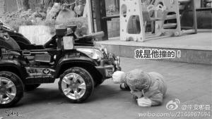 四川郫县官微发照片 1岁萌宝演绎碰瓷全过程(图)
