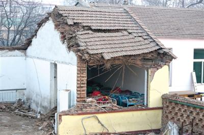 昨日,河北廊坊永清县刘街乡徐街村春蕾幼儿园教室倒塌现场。倒塌房屋为学前班一年级教室,修整前曾为村委会办公室。