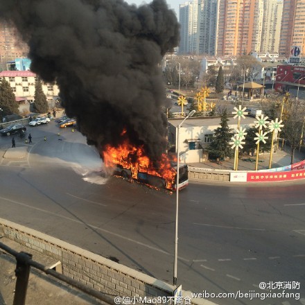 北京丰台方庄环岛一公交车起火 无人员伤亡(图)