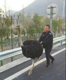 鸵鸟高速狂奔交警“陪跑”8公里