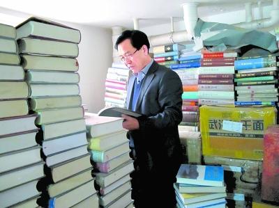 李春雷在自家的地下室里翻查方志资料。本报记者 王国平摄