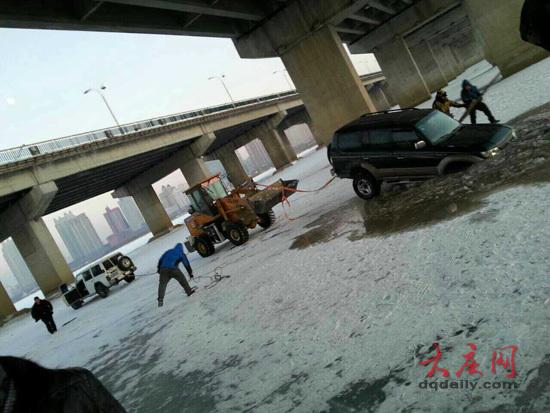 小狼和朋友们立即把男子扶上车,拿出车上的衣服给他换上。他们把自己的车开到冰窟窿附近,不顾天气寒冷,跳入江中系好牵引绳,七台车经过三个小时的营救,终于把车从冰窟窿里拉起。