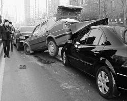 对于奇瑞商务轿车司机的说法,后面三辆轿车的司机都说,前面的车车速一下子慢了起来,他们躲避不及就撞上了。据了解,除了出租车上还有两名乘客外,其他三辆车上都只有司机一人。在事故发生的瞬间,出租车上的两名乘客吓了一跳,幸好没有受伤。
