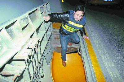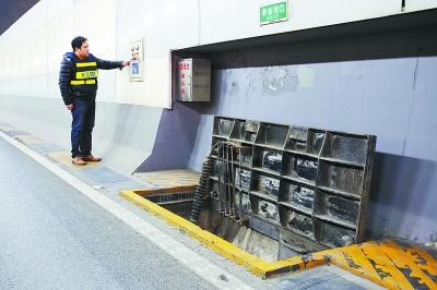 徐磊介绍说,长江隧道江底段横截面好像一个巨大的管道。在管道中部,就是隧道的车行道,下面则是逃生通道。连接车行道与逃生通道的是69个疏散口。从汉口端进入长江隧道,经过防洪闸门后走100米左右,就可以看到左侧有逃生疏散口。疏散口与地面齐平,上面是一个厚厚的铁盖板,可以容一个人出入。盖板约30公斤重,通过液压杆连接上方和下方控制器。记者按下按钮,3秒钟闸门就贴墙立起。如果按钮失灵,盖板上有抓手,一个成年人就能打开。打开盖板,下面是一条黄色的滑梯。这条滑梯是塑钢的,宽1米、长2米多,坡度约30度。记者蹲在滑道内滑下,1秒钟就滑进了逃生通道。“这条滑道也是武汉长江隧道的‘独门绝活’,目前国内其他跨江隧道都没有。”言语中,徐磊骄傲之情溢于言表。