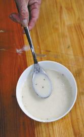 黑芝麻糊冲水后,可以看见很多蛆虫。