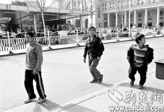 虽然春运临近尾声,汉口火车站仍一派繁忙,到处是熙熙攘攘的人群。记者随救助人员在车站广场一路走来,并未发现流浪乞讨人员,但在出租车下客处,3个身有残疾的男子正抢着为乘客开门,并索要开门费,救助人员劝离了他们。