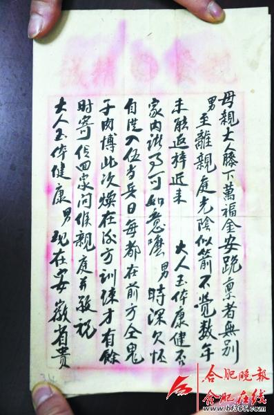 战士在信中写道: 每天在前线与鬼子肉搏