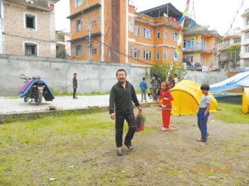 曾玉提着鸡汤去看望受伤登山者了。她身后的院子里,几个尼泊尔和中国小朋友打起羽毛球、跳起绳子。只有院子外,一处院落墙上的裂缝,让人们想起,这里曾经发生过大地震。记者梁斌