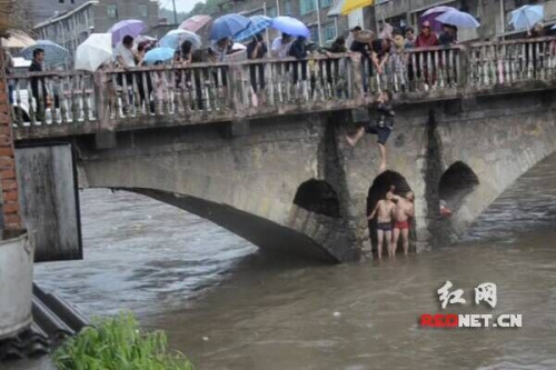 湖南男子因暴雨被困桥洞 当地镇长跳河救人(图)