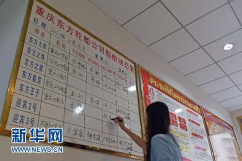 6月3日,重庆东方轮船公司工作人员在更新游轮航行信息。记者 陈诚 摄