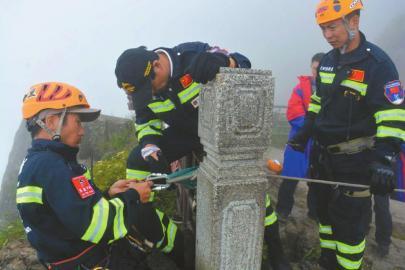 6月10日,王麒穿戴装备准备下崖搜救。