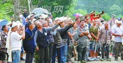 陈开元擅长吹长号、短号、葫芦丝等乐器,更是音寨村老年协会的成员,在协会里负责吹长号。寨里布依文化演出,时常可以看见陈开元老人的身影。如今,一场暴雨,老年协会中的5个长号手,只剩下了4个。青山呜咽,长号悲鸣,平时与陈开元一起的4个老搭档用特殊的方式,为他们的好伙伴、好队友送行。