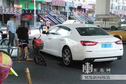 人力三轮车与百万“玛莎拉蒂”相撞 无人受伤