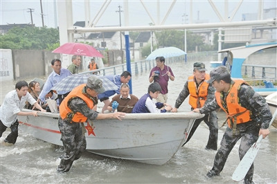 28日7时40分,见到官兵驾舟前来营救,丁堰区芳渚村63岁老太太张学华非常激动。1991年至今她经历过4次洪灾,每次都是被子弟兵所救。这一次被困了2天,等待子弟兵救援成了她坚持的动力。