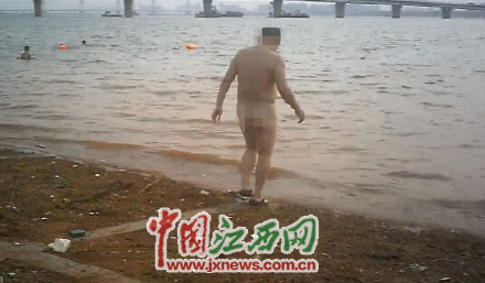 南昌众男子结队在赣江裸泳 女游客倍感尴尬(图)