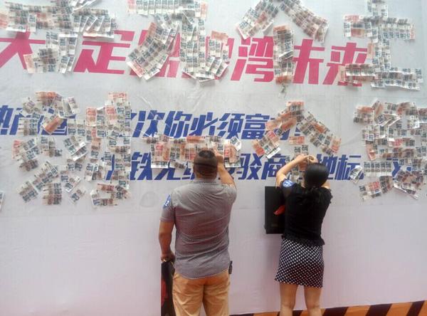 7月4日,在成都沙湾路上,竟出现了一面贴满了钱的墙。原来是“土豪”的开发商正在“任性”甩钱。