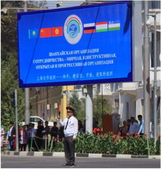 2014年,杜尚别市内的上合峰会宣传牌。黄文帝摄