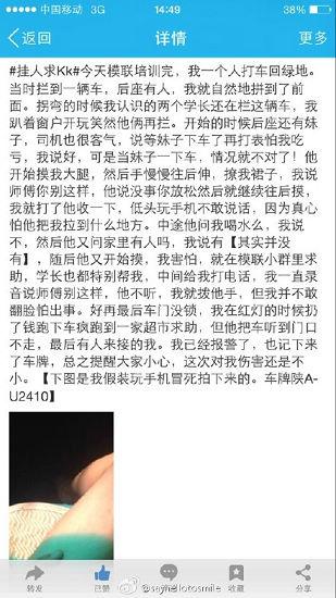 西安一初中女孩称坐出租被猥亵 警方已介入调查