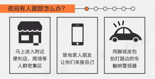 夜幕是很多犯罪分子的“心理保障”,所以,即便衣着保守,女孩们也要尽量避免深夜独行。树林、深巷、酒吧等娱乐场所,都是落单女孩的雷区。如果非走不可,女孩务必结伴同行!